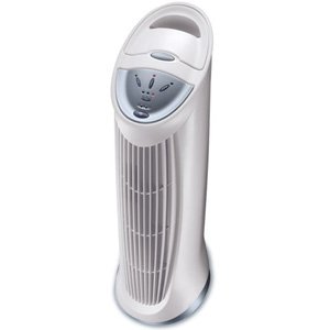 Kaz Inc 12' x 10' Room Air PurifierThe QuietClean towerair purifier offers superior air cleaning power with permanent filtration. The high efficiency permanent filter removes up to 99% of airborne particles such as dust, pollen, smoke and pet dander, returning cleaner, fresher air to your room. Comparedto ionic air purifiers, the filter from the HFD-110 captures 12 times more pollutants+. A powerfulbut quiet fan pulls air into the unit, circulating and filtering the air in your room several timeseach hour. The permanent filter is easily rinsedclean in water, requiring little maintenance andno expensive replacement filter costs. An automatic filter clean indicator will even remind you when it's time to clean the filter. Easy-to-use, touch button electronic controls allow you to choosefrom 3 air cleaning levels. You can also set the timer to automatically shut the air purifier off after 4, 8, or 12 hours. The convenient tower design takes up little space, making it ideal for any room in your home.