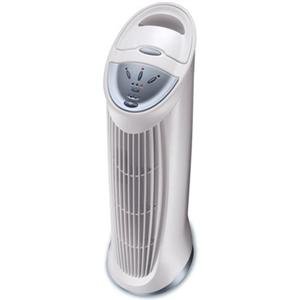 The QuietClean tower air purifier offers superior air cleaning power with permanent filtration. The high efficiency permanent filter removes up to 99% of airborne particles such as dust pollen smoke and pet dander returning cleaner fresher air to your room. Compared to ionic air purifiers the filter from the HFD-110 captures 12 times more pollutants+. A powerful but quiet fan pulls air into the unit circulating and filtering the air in your room several times each hour. The permanent filter is easily rinsed clean in water requiring little maintenance and no expensive replacement filter costs. An automatic filter clean indicator will even remind you when it's time to clean the filter. Easy-to-use touch button electronic controls allow you to choose from 3 air cleaning levels. You can also set the timer to automatically shut the air purifier off after 4 8 or 12 hours. The convenient tower design takes up little space making it ideal for any room in your home.