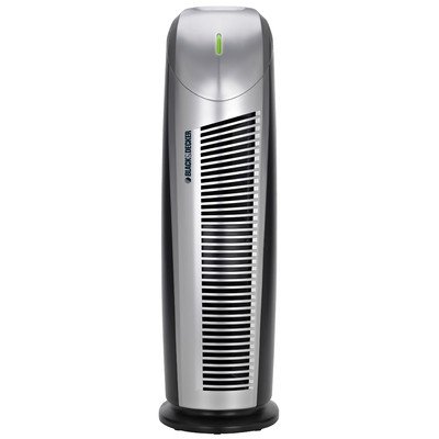The Black&Decker HEPAFresh Air Cleaner tower is designed to help improve the quality of air in your home by reducing allergens and odors. The multi-layer filter captures up to 99% of airborne particles, such as dust mites, pollens, mold spores and pet dander; while the carbon layer reduces common smoke, cooking and pet odors. It is designed with a pre-layer to capture large dust particles, extending the life of the filter. The 22" tower is effective for filtering the air in medium sized rooms and offers 3 fan speeds depending on your needs.